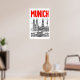 Munich Skyline Poster, Red Title, Black Outline Poster