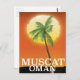 Muscat Oman vacation poster of a large setting sun and a palm tree in the middle eastern nation.