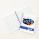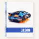 This notebook is shown in a regular shape with college rule pages with a muscle car art print.
