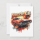 A digital illustration of a vintage t-shirt design of a muscle car on fire.