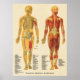 Posterior views of the muscles and bones of the male body. Bones and ligaments of the shoulder, knee and pelvis. Muscles of the arms, back and legs. Vintage anatomical illustrations used to create this anatomy chart.