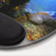 The plastic backing is nice and sturdy. The grippy pads underneath keep the mouse pad where I put it on my table. The pad the mouse sits on is cut well to fit the backing. The wrist pad is perfectly soft, supportive, and thick. I'm left-handed, and this mouse pad works just as well for me as it does for my right-handed friends. I'm the designer of HippieClecticHope products. I'm blown away by how well my intricate fractals turn out on the tangible items in the Zazzle Marketplace. This particular mouse pad ***appears*** like a 3D object... A mathematically-engineered rainbow black opal, inlaid under transparent fabric...