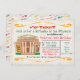 Cute and funky children's Museum birthday party invitation. Features a old museum with dinosaur, scroll work and fun colorful fonts.