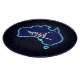A simple white silhouette of a dog sled and the Southern Cross superimposed on a blue map of Australia. All on a starfield background. Who would have thunk it? Mushing upside down in Oz. Dog sledding is quite popular in Australia. At Mount Hotham in Victoria there is a big race every year.