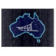 A simple white silhouette of a dog sled and the Southern Cross superimposed on a blue map of Australia. All on a starfield background. Who would have thunk it? Mushing upside down in Oz. Dog sledding is quite popular in Australia. At Mount Hotham in Victoria there is a big race every year.