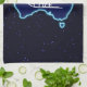 A simple white silhouette of a dog sled and the Southern Cross superimposed on a blue map of Australia. All on a starfield background. Who would have thunk it? Mushing upside down in Oz. Dog sledding is quite popular in Australia. At Mount Hotham in Victoria there is a big race every year.