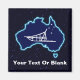 A simple white silhouette of a dog sled and the Southern Cross superimposed on a blue map of Australia. All on a starfield background. Who would have thunk it? Mushing upside down in Oz. Dog sledding is quite popular in Australia. At Mount Hotham in Victoria there is a big race every year.