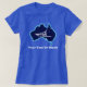 A simple white silhouette of a dog sled and the Southern Cross superimposed on a blue map of Australia. Who would have thunk it? Mushing upside down in Oz. Dog sledding is quite popular in Australia. At Mount Hotham in Victoria there is a big race every year.