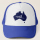 A simple white silhouette of a dog sled and the Southern Cross superimposed on a blue map of Australia. All on a starfield background. Who would have thunk it? Mushing upside down in Oz. Dog sledding is quite popular in Australia. At Mount Hotham in Victoria there is a big race every year.