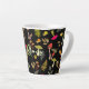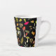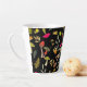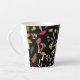 Consider this country chic mushroom latte mug to have your morning drink. It has a black background with pink, orange and green mushrooms. Interspersed are sprigs of foliage in greens and gray. Bright green beetles and orange snails give this mug a whimsical look. It can be personalized with a name and initial in your choice of font.