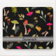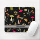 This country chic botanical mousepad can be personalized with a name or initials. It has a black background with pink, orange and green mushrooms. Interspersed is a variety of foliage. Bright green beetles and orange snails give this design a whimsical tone.