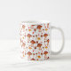 Cottagecore style Mushroom coffee mug in brown, red and yellow on a white background.