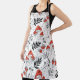 Mushroom fungi seamless vintage repeat pattern. Line art mushrooms flowers leaves plants repeating background. Black white red Nature texture, pattern design