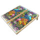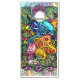 Colorful, traditionally illustrated mushroom garden with a little white mouse by artist Julie Ann Stricklin.