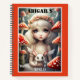 A cute colorful notebook featuring an illustration of a fairy girl with an angel rabbit surrounded by magical mushrooms. On the back is a simple retro polka dot design on your custom color background. A whimsical heartwarming gift.