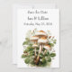 The perfect mix of rustic and boho. Watercolor mushroom and simple font for your save-the-date card.