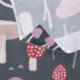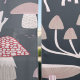 Fun and moody mushroom, toadstool and fungi design in cream, blush pink with touches of red on a dark background. Original art by Nic Squirrell.