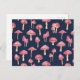 Colorful watercolor navy blue and pink mushroom pattern postcard. Original art from artists own illustrations. Matching items available. Please use the message me button below for help with further customization and special requests. © Zoe Chapman Design
