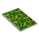 Notebook in a pattern of wild mushrooms and green ferns, growing in the forest