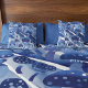 An abstract watercolour image including mushrooms fungi and toadstools all in blue. A serene feel.