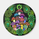 A magnet with colorful psychedelic mushrooms surrounded by green paisley and green mandalas.