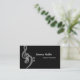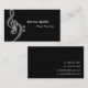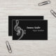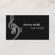 A simple black/white music business card design - white treble and bass clefs against a textured black background. Front text displays Name and Title, while the back text displays Phone, Mobile, Email, and Web Address. All text are customizable.