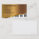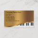 Music business cards with piano and black and gold background that gives this business card template a look of class. Customize the text color or layout and make this work for you as a musician, piano bar, or music lessons business card.