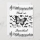 Black Music notes,butterflies,stars and hearts invitation.