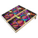 Natural Wood Cornhole Set, Yellow and Purple bags