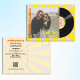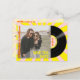 A unique wedding save the date postcard with a bright splash with a summer music festival feel, Your photo on a retro vinyl record album cover. The background is a bright sunburst in summer pink and yellow colors, coordinating with the text on the album cover and record label, which features your names, event date, and location. The reverse side of the postcard features the same burst as a background and has room for additional messaging about your big date, including a wedding website QR. Vintage 60s, 70s, 80s music fans. 12-inch LP look. Get your guests dancing to the music groove of your wedding!