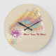 Let these bright colored musical notes flow through your day on thus beige background acrylic wall clock in your room.