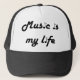 Music is My Life text design. This fun hat is great for the avid music lover out there! Background colors may be customized on certain products with lighter colors looking the best.