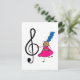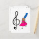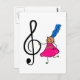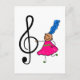 Cute cartoon whimsical illustration of a happy little stick figure girl holding a giant musical treble clef symbol. Easily customize and choose your own background colour or add text. Image available on various gifts and products.