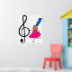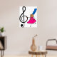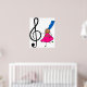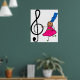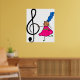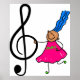 Cute cartoon whimsical illustration of a happy little stick figure girl holding a giant musical treble clef symbol. Easily customize and choose your own background colour or add text. Image available on various gifts and products.