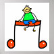 Cute cartoon whimsical illustration of a happy little stick figure boy sitting on a giant musical symbol. Easily customize and choose your own background colour or add text. Image available on various gifts and products.