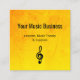Music lessons business card, with a gold design and a treble clef symbol. With black customizable lettering, you customize with your own information. You also add your website to allow for connection with a QR code. Great for promoting your musical performing and teaching.