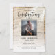 A beautiful celebration of life invitation featuring your loved one's photo and custom text. The background features musical notes - perfect for someone who was a musician or loved music. (You can easily change the background photo to your own.) Classic yet unique - this template is so easy to personalize and will make a wonderful memorial keepsake too.