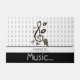 With a treble clef assorted quavers, some vinyl records & an old skool microphone, this simple sketch is an elegant design for all music lovers.