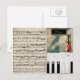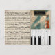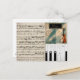 Sheet music, violin, piano keys make up this one of a kind postcard.