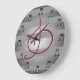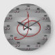 Designer music clock in silver gray and deep wine red showing a treble clef musical symbol in red and musical eighth notes for each of the hour markers. Great silver gray background striped like musical notation sheets with an updated contemporary look. Beautiful gift for music schools, music students, musicians, music lovers, clubs and music teachers. Perfect music themed clock for anywhere bands and musicians practice or perform. CricketDiane Designer / Artist 2017 and Cricket House Studios Art and Design. (2016 design remix)