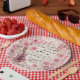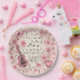 Paper plates with an illustration in a vintage romantic style. Musical notes, flowers, butterflies and a guitar. A lovely sentimental vibe.