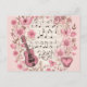 Postcard with an illustration in a vintage romantic style. Musical notes, flowers, butterflies and a guitar. A lovely sentimental vibe.