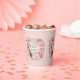 Paper cups with an illustration in a vintage romantic style. Musical notes, flowers, butterflies and a guitar. A lovely sentimental vibe.