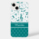 Music Notes and Hearts Pattern Teal and White Case-Mate iPhone Case