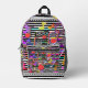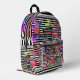 Lightweight and durable, our custom all-over-print Backpack is just what you need. The spacious interior is ideal for travel, school, gym, or any mobile storage need. Bring your stuff with you in style! Features Adjustable padded shoulder straps, two chambers on the inside for laptop storage, mesh side pockets and an identification label.