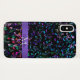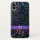 Music Notes Personalized iPhone X Case. A black phone case with colorful blue, green, lavender, pink and gold musical notes with a purple ribbon. Fill in your name and initial at the prompt to personalize and customize any way you like. A great gift for your favorite musician or music lover. #music