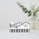 Personalized, custom color business cards featuring a piano keyboard and music staff with notes in your choice of graphics and background colors or choose from a selection of designer graphic backgrounds and monogram in your choice of font styles and colors to create your own custom look in EDIT. The sample shows black and white. ASSISTANCE: For help with design modification or personalization, color change, transferring the design to another product or if you would like coordinating items, contact the designer BEFORE ORDERING via the Zazzle Chat MESSAGE tab below or email makeitaboutyoustore@gmail.com.