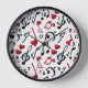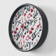 This wall clock is perfect for music lovers and home décor enthusiasts alike. Featuring a beautiful pattern of musical notes, sheet music symbols, and hearts in black and red, this wall clock is sure to bring a fun and musical atmosphere to any place. With its unique design, it makes a great gift for friends and family who appreciate music.