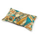 Vivid colors, and soft, plush fabric! I was extremely happy with this purchase. The print I chose worked on the large dog bed beautifully, and is a perfect match for our home tiki bar. Our dogs look so stylish lounging in here with us, and they love the soft fabric. My only minor critique would be that the stuffing inside is a little on the thin side, and becomes flat very easily. It's an extremely easy fix to add more stuffing, or do what we did and add a stuffed rectangle crate liner inside the cover underneath the existing stuffing - works perfectly! The printing turned out better than I could've imagined. I was extremely impressed with how well the colors turned out and how the design looked.