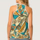 Women's All-Over Print Racerback Tank Top, White Piping, S